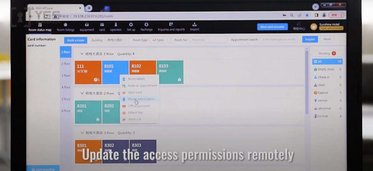 After all the procedures are set up, if a guest check-in, you can directly select the room where the hotel guest will stay on the system, then enter the guest’s information and check-in time, and then randomly take out an empty card and place it on the card issuer to issue card. The card can also be authorized on the hotel check-in system to enter the relevant public areas in the hotel.