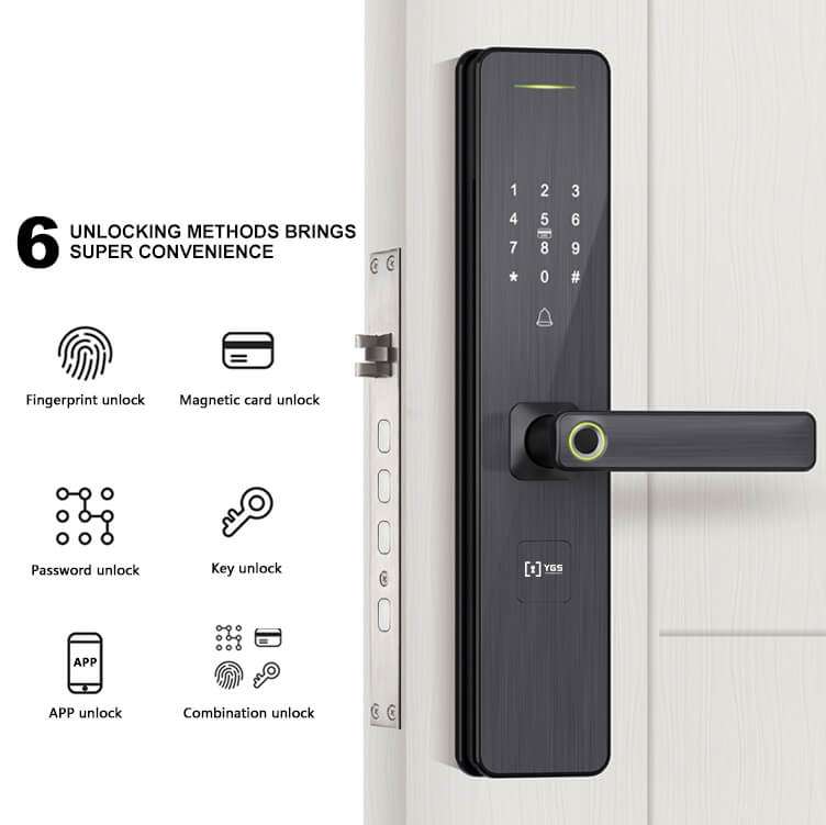 | Unlock method | Bluetooth App, M1 Card, Pass code, Fingerprint, Wristband or key |