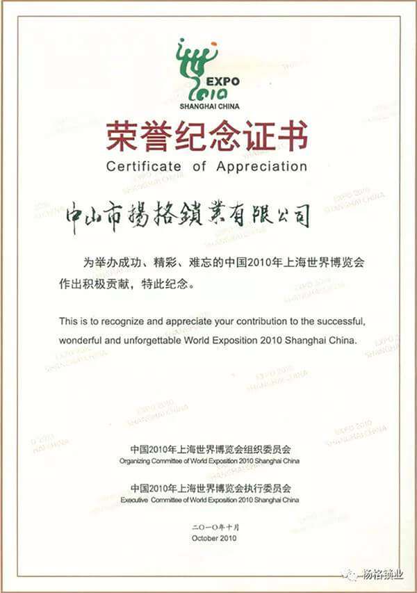 The YGS smart lock of Yangge Lock was rated as the best supplier for the Shanghai World Expo.